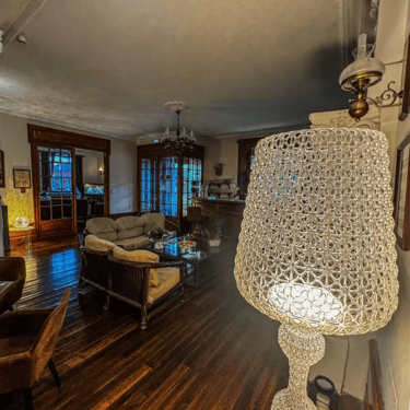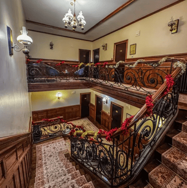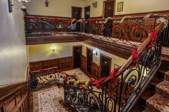 Un escalier majestueux, de bois et fer forgé dessert de magnifiques chambres, réparties sur deux niveaux.