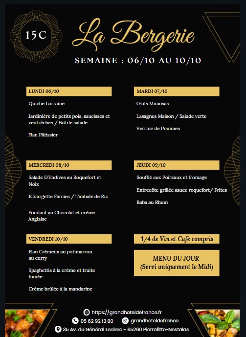 Idéalement situé sur la route des Grands Sites, ou pour une halte gourmande après une journée en station de ski ou un moment de détente dans un centre de balnéo, le restaurant La Bergerie est une adresse incontournable pour découvrir la gastronomie locale. Chaque repas devient une expérience conviviale, où le terroir s’invite à votre table avec simplicité et élégance.