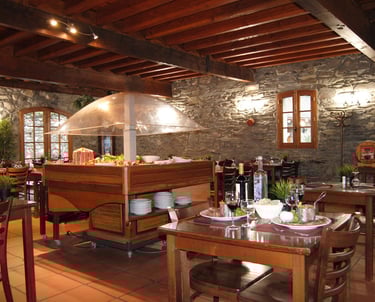 De passage à l’hôtel, prenez le temps de vous attabler dans un lieu authentique où la pierre et le bois s’unissent pour créer une atmosphère chaleureuse et conviviale. Dans ce décor à la fois rustique et élégant, notre chef vous propose une cuisine de terroir qui sublime les produits locaux et met en valeur la richesse culinaire des Pyrénées.