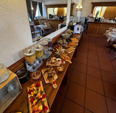 Vous préférez le salé ? Laissez-vous tenter par des œufs brouillés ou au plat, accompagnés de saucisses fumées, de bacon croustillant et d’un plateau de fromages et charcuteries locales. Un vrai moment de gourmandise pour bien commencer la journée.